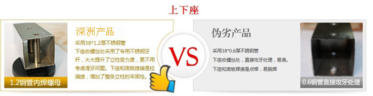 不銹鋼立柱底座的螺絲處采用了專用不銹鋼牙桿,大大提升了立柱承受力,更不用考慮滑牙問題。下座和底板焊接是拉滿焊,增加了整條立柱的牢固性。